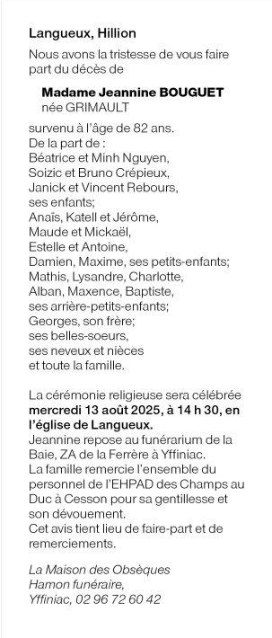 Madame Jeannine BOUGUET née GRIMAULT
