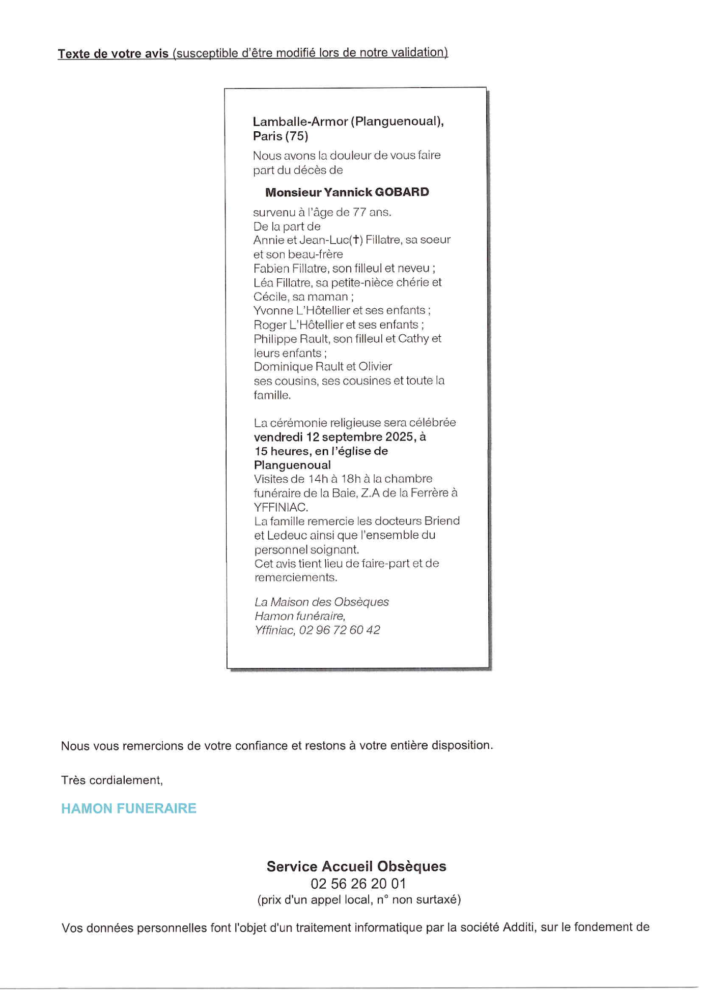 Domicilié à La Cotentin Planguenoual (22400, France)