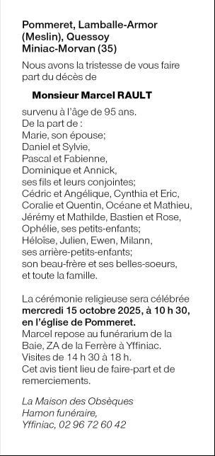Décédé à Saint-Brieuc (22000, France) le vendredi 10 octobre 2025 à l'âge de 95 ans