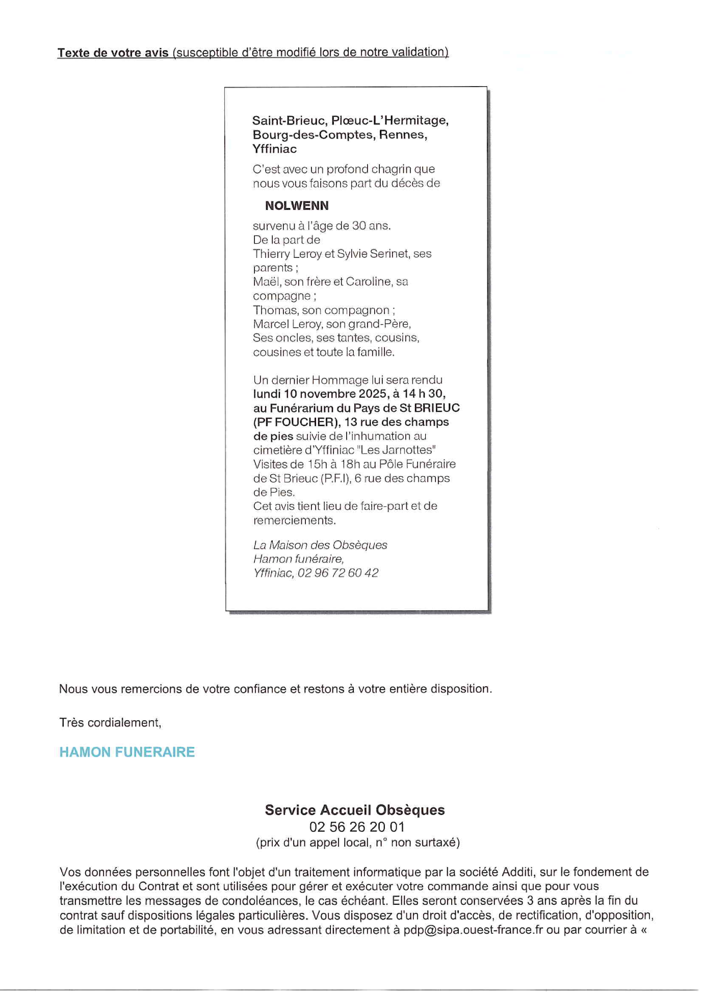 Annonce nécrologique