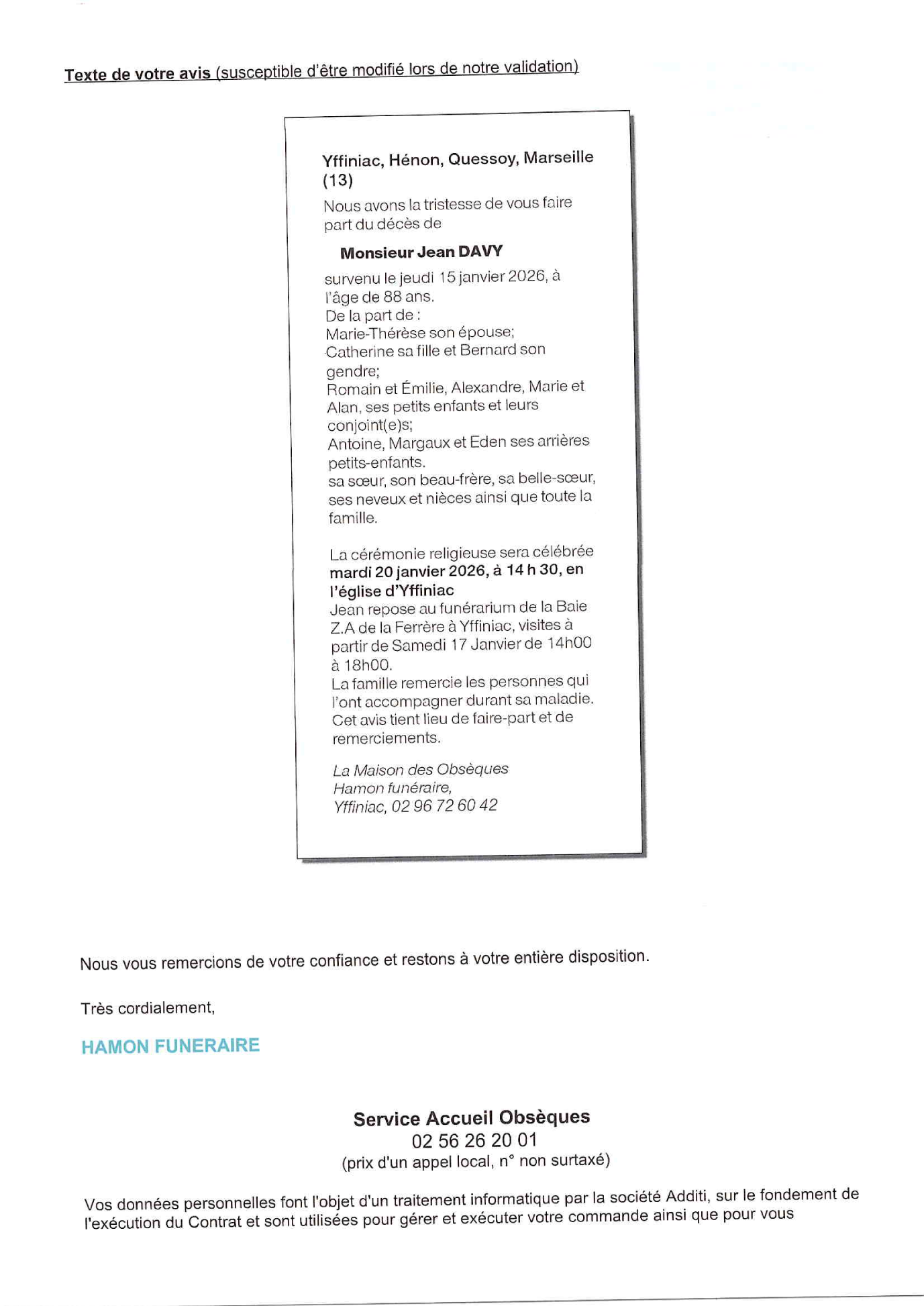 Annonce nécrologique
