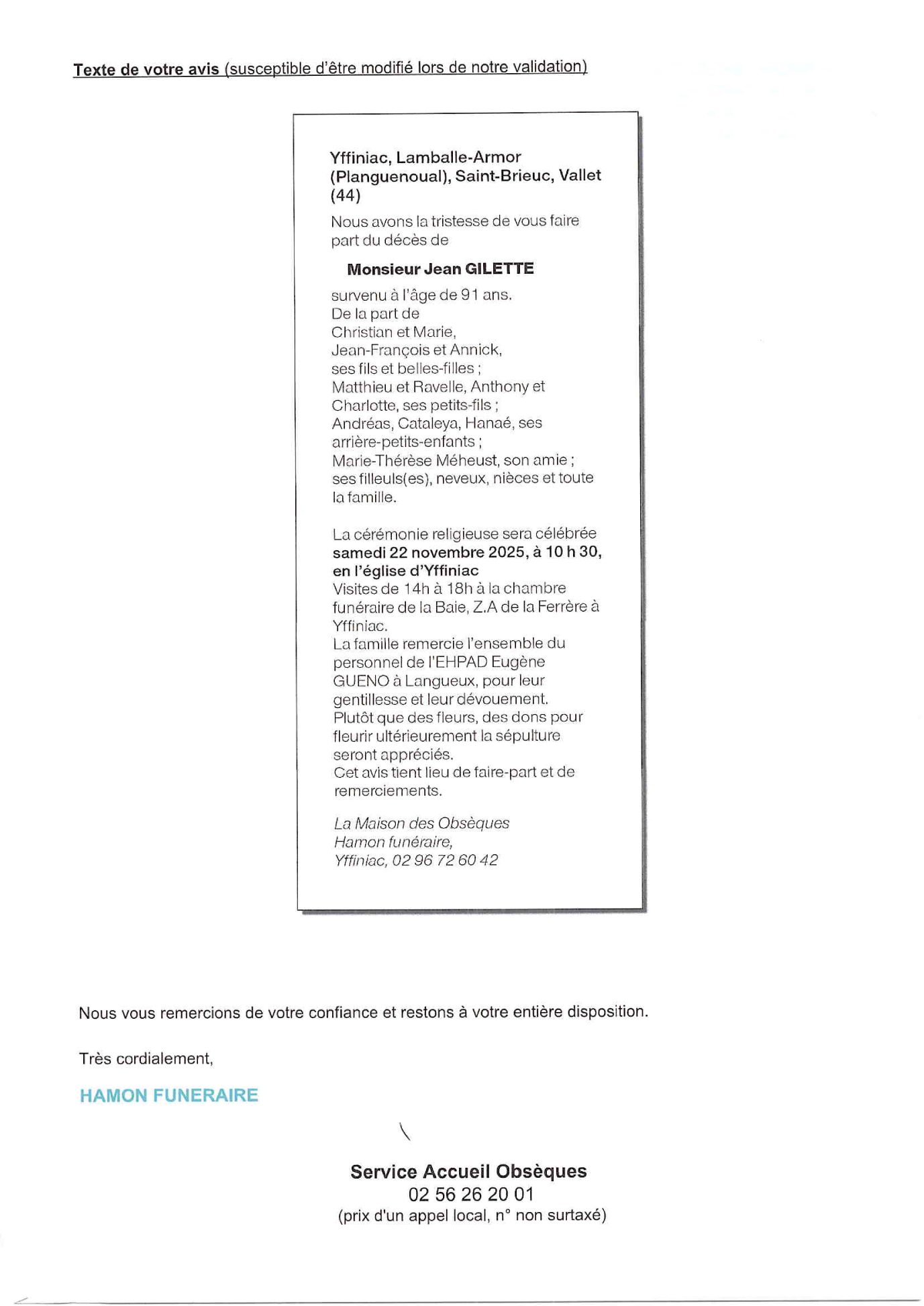 Décédé à Langueux (22360, France) le mardi 18 novembre 2025 à l'âge de 91 ans