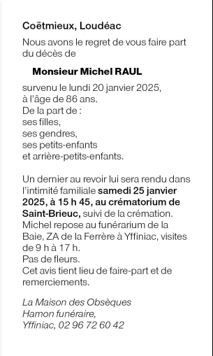 Décédé à « Localité inconnue »  (France) le lundi 20 janvier 2025 à l'âge de 86 ans