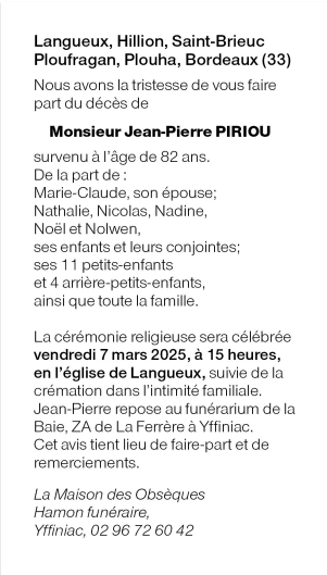 Décédé à Saint-Brieuc (22000, France) le dimanche 2 mars 2025 à l'âge de 82 ans